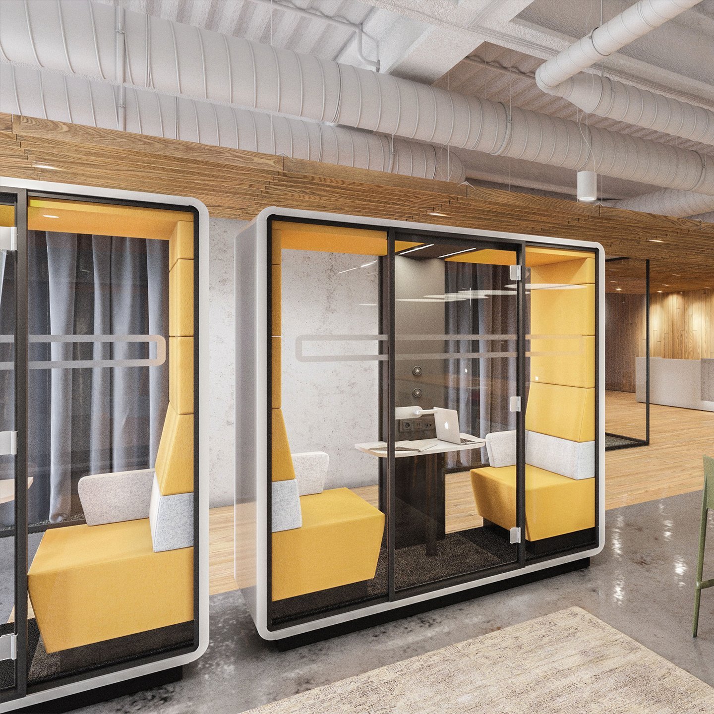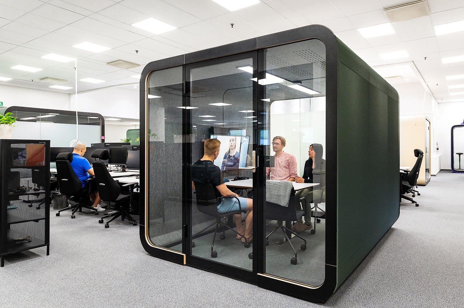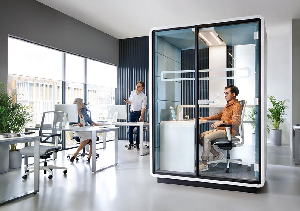 Toplantı kabini, ofislerdeki gürültüyü engelleyerek, profesyonel ve sessiz...