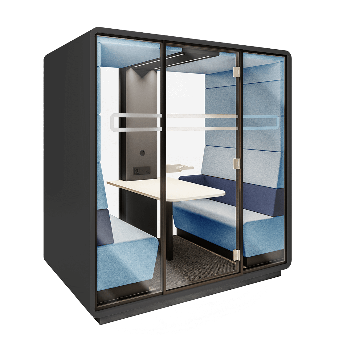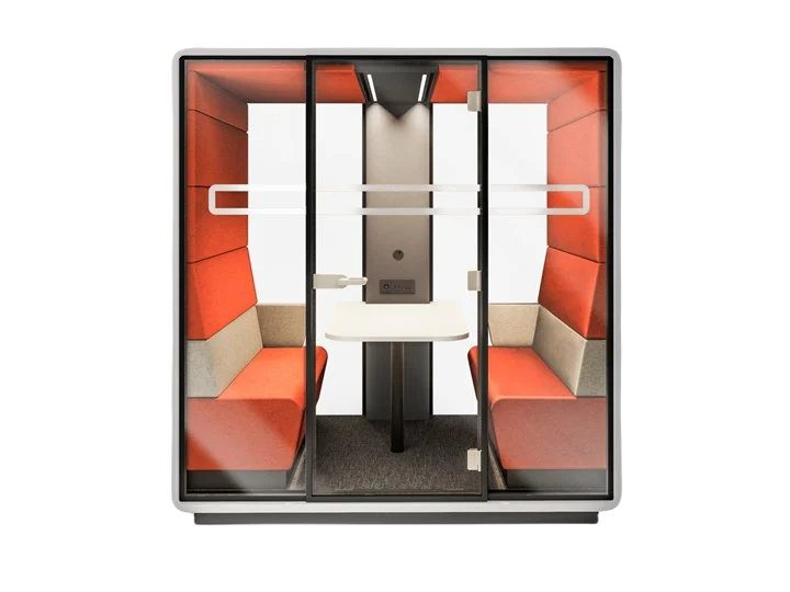 Akustik toplantı kabini, ses yalıtımı sağlayarak dış gürültüyü engelleyen ve iç sesin dışarı çıkmasını önleyen, genellikle taşınabilir bir kabin sistemidir. Özellikle açık ofis planlarında çalışanların gizlilik ihtiyacını karşılamak ve dış ses kaynaklarından izole bir toplantı ortamı oluşturmak için idealdir.